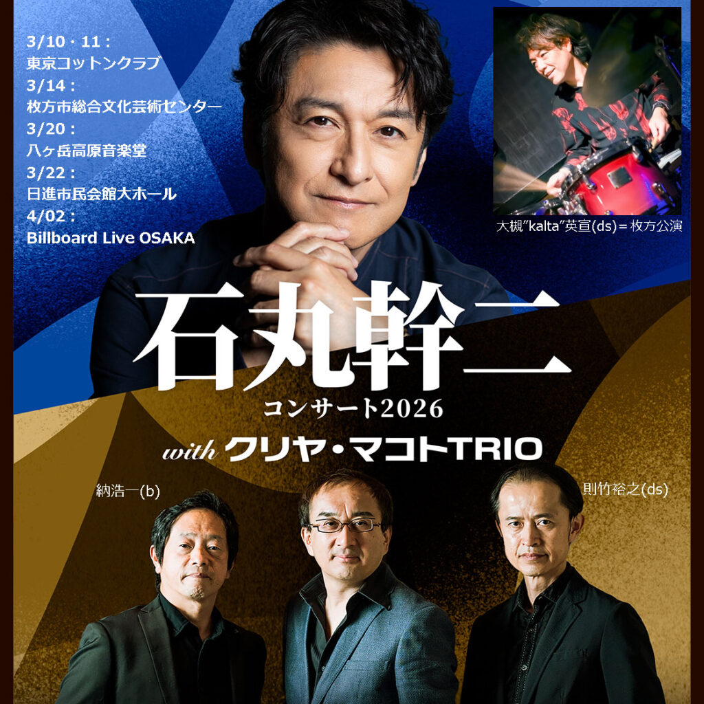 出演:石丸幹二(vo)、クリヤ・マコト(pf)、納浩一(b)、則竹裕之(ds)、大槻カルタ英宣(ds:3/14のみ)